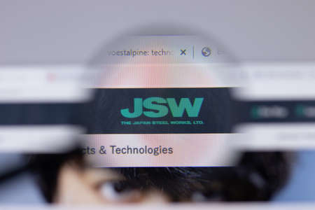 New York, USA - 26 April 2021: Japan Steel Works JSW logo close-up on website page, Illustrative Editorial