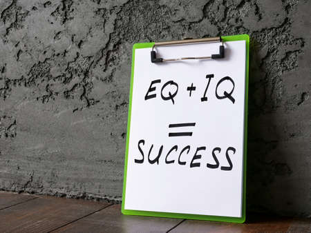 Clipboard with words EQ plus IQ success.