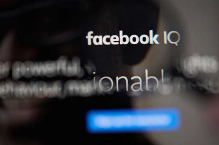 New-York , USA - March 13, 2020: Facebook Iq platform on laptop close up view