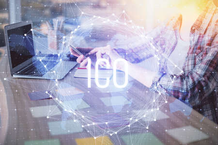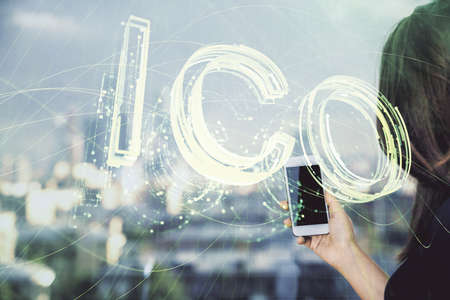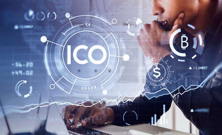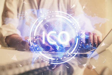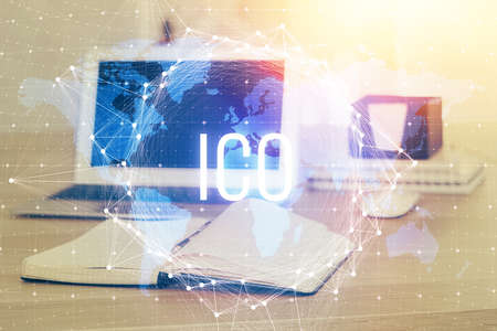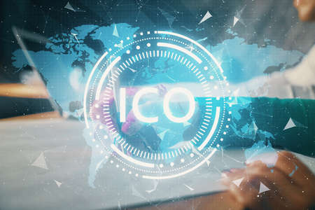 ICO - Initial coin offering. Blockchain and financial technology concept.