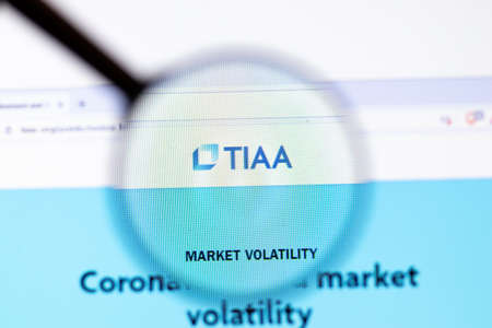 Los Angeles, California, USA - 20 March 2020: TIAA company logo on website page close-up on screen, Illustrative Editorial.