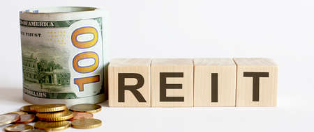 Concept investments risk, word made by letter blocks. Stack of money american hundred dollar bills