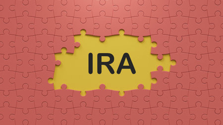 IRA individual retirement account word on puzzle pieces with missing pieces block.close up of puzzle pieces with missing pieces,Business Concept.3D rendering.