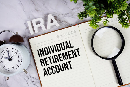 IRA - Individual Retirement Account acronym on notepad, Business concept background