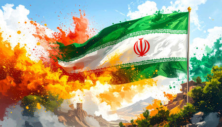 Iran flag waving in the wind in Teheran