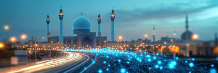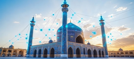 Naqsh-e Jahan Square with Digital Network Overlay, Symbolizing Technology in Isfahan, Iran