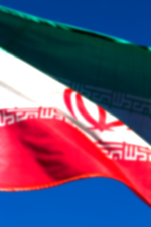 Fragment of the Flag of Iran in the foreground place for text blurred background