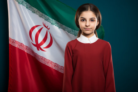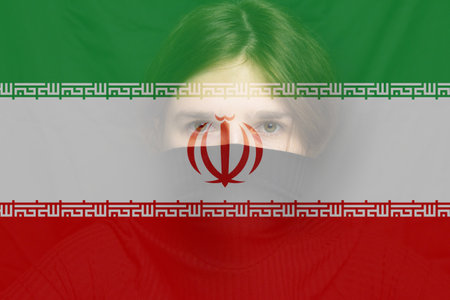 Beautiful Iranian woman with Iranian flag backgroud. Generative AI.