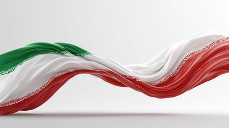 This artistic representation captures the flowing colors of the Iranian flag, showcasing red, white, and green fabrics in soft waves. Ideal for cultural themes.