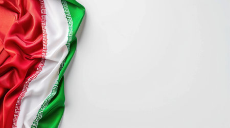 This elegant image features a draped Italian flag showcasing rich colors of red, white, and green against a clean white background, perfect for themes of celebration.
