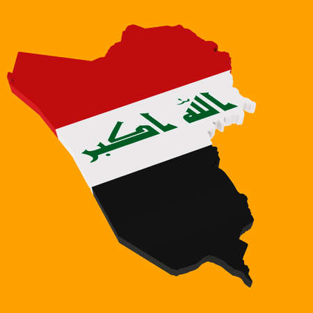 3D model of the map of Iraq in the colors of the national flag on a yellow background. Isolated. Layout. Rendering