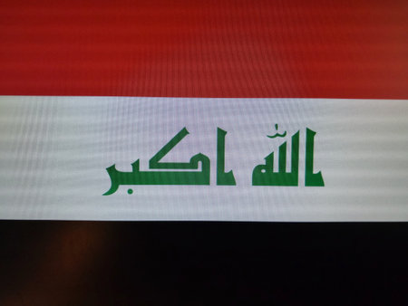 Towel fabric pattern flag of Iraq, Crease of Iraqi flag background, a horizontal tricolor of red white and black with the “God is greatest