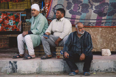 Siwa, Egypt - November 03, 2021: Local Egyptian Families: Men, Women, Children walking on the Siwa Oasis Streets and Talking together
