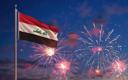 AI Generative The national flag of the independence of the state of Iraq, background of fireworks