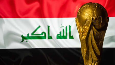 6 October 2021 Baghdad, Iraq. FIFA World Cup against the background of the flag of Iraq.