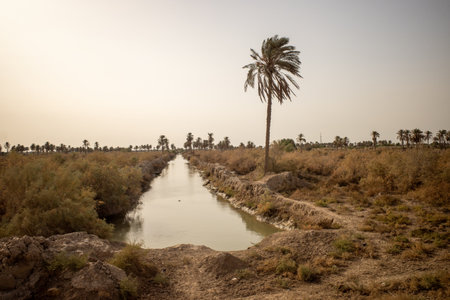 ERBIL, IRAQ - OCTOBER 9, 2022: Sunset seen from a road to Erbil citadel in Erbil (Hawler), Kurdistan Region of Iraq