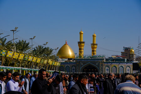 Karbala, iraq - February 04, 2023: photo of the holy shrine of imam Hussain in Karbala city