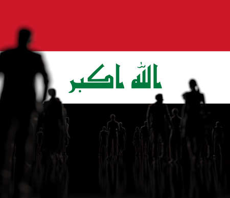 Silhoettes of unknown men and women on the flag of Iraq background. 3d rendering