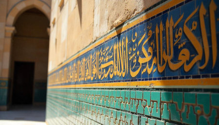 Intricate Arabic Calligraphy on Decorative Tiles in Earth Tones