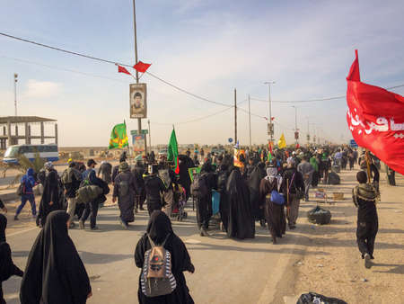 Karbala, Bagdad, Iraq, 06 09 2019: A religious movement in Iraq. Karbala city. Millions attend Arbaeen commemoration in Karbala.