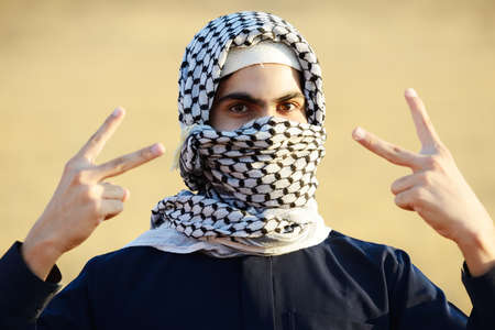 Portrait of a middle eastern man in traditional clothes. Traditional arabian clothing.
