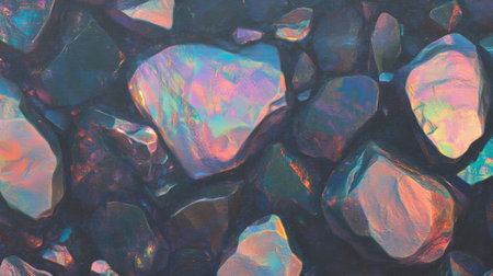 Iridescent gemstone wall texture with bright multi-color reflection