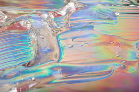 Abstract cosmetics gel on holographic background.Good as cosmetic banner.