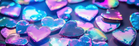 Valentine's day background with soft cloth textured shiny holographic blue and pink hearts. AI generative illustration.