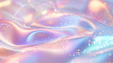 A vibrant soft pastel fabric features an iridescent shine and glittery texture, creating a dreamy and ethereal background perfect for artistic projects.