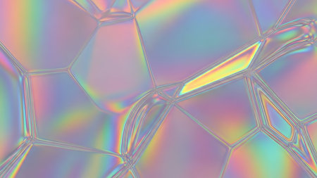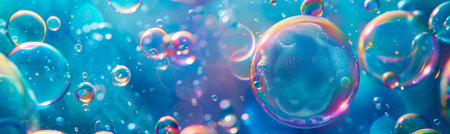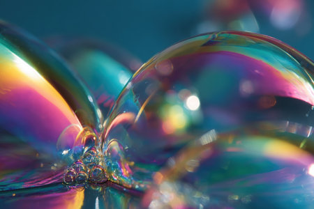 Colorful iridescent bubbles, abstract geometric pattern, microscopic view, vibrant colors