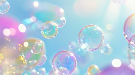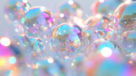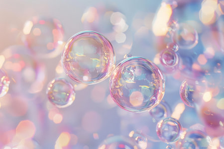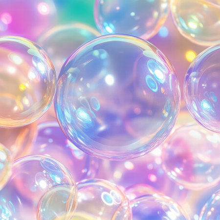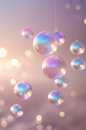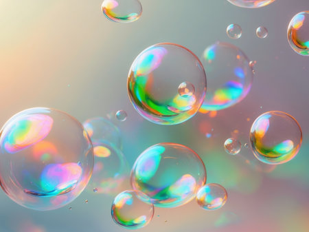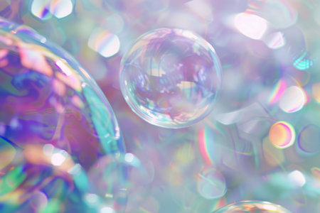 Radiant Soap Bubbles with Rainbow Reflections and Pastel Tones.