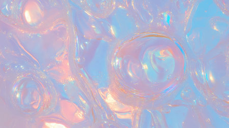 fluid or gel texture with a colorful and reflective shimmering iridescent background.