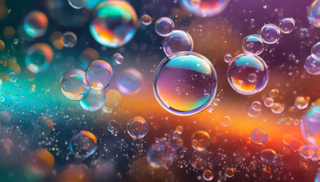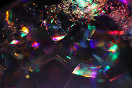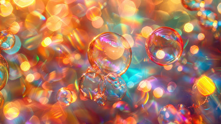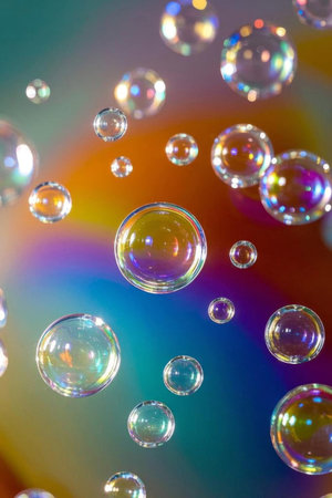 Radiant reflections: Soap bubbles with light shining through them, creating an abstract, colorful background full of luminous patterns
