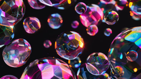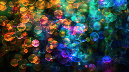 Vibrant rainbow bubbles creating a prismatic effect against a black background