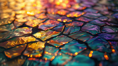 High-resolution abstract background featuring a holographic rainbow foil texture with iridescent effects. This colorful and reflective design offers a shiny, dreamy look perfect for modern digital art, trendy web design, packaging, or creative print materials. The surface glows with shifting pastel and neon tones, creating a futuristic and magical atmosphere. Ideal for projects needing a vibrant, luxe, and visually engaging backdrop. AI-generated seamless pattern