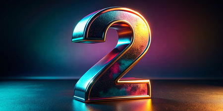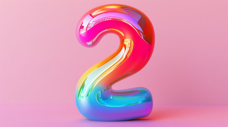 Colorful metallic number 2 two on pink background, modern art design concept.