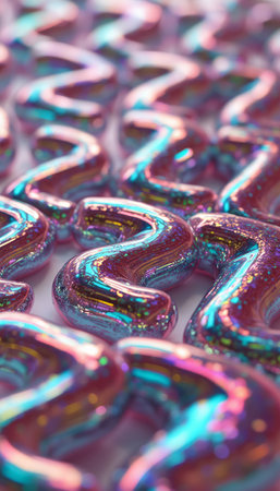 A stunning array of glossy, wavy shapes glistens with iridescent hues, creating a mesmerizing visual effect. The interplay of light and color evokes a sense of wonder and creativity, inviting viewers to explore the beauty of abstract art.