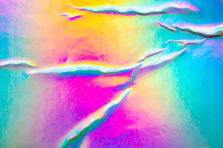 Iridescent foil texture displaying vibrant colors and clean shadows for trendy design applications