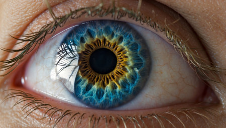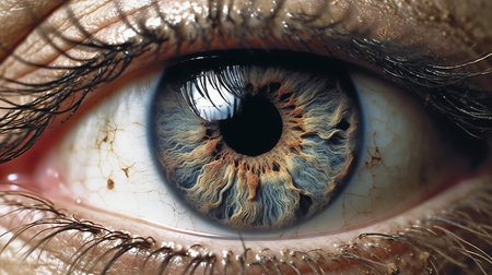 An intricate close up of a human eye showcases vibrant colors and detailed patterns in the iris revealing the stunning complexity of human anatomy.