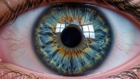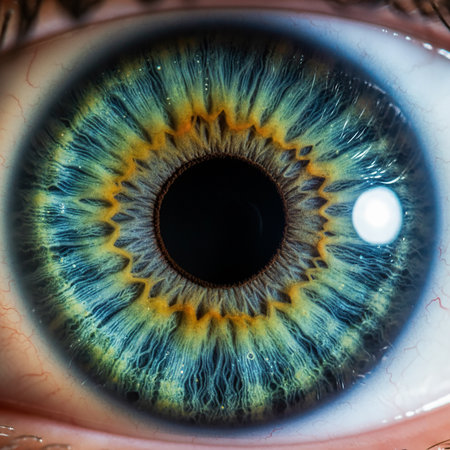 Detailed close-up of a human eye, featuring a colorful iris and sharp pupil, emphasizing the complexity of human anatomy and the beauty of vision
