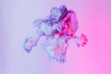 Beautiful Iris flower on a light gray background. Minimal concept.