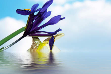 iris and daffodil very nice colorful flower combination close up