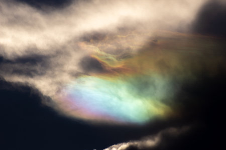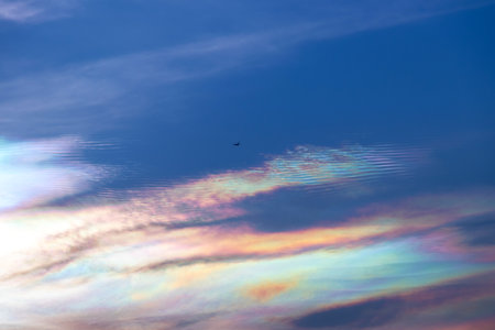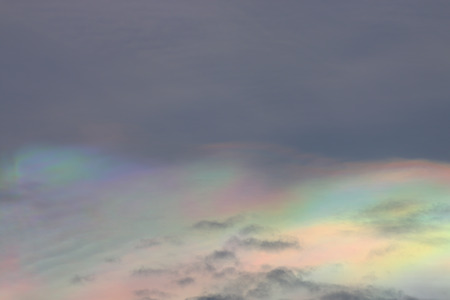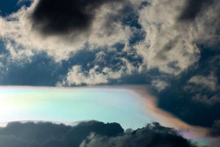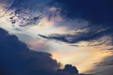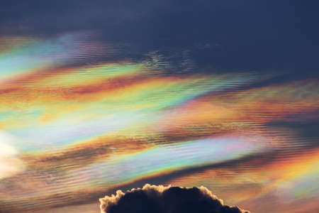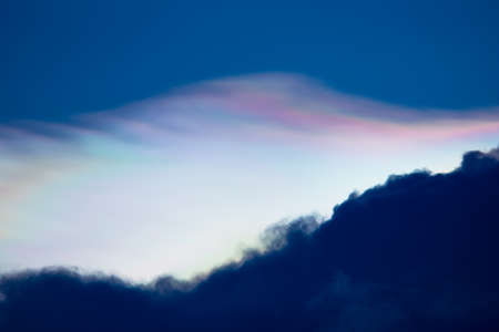 Cloud iridescence phenomenon on sunset sky.