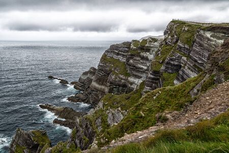Scenic coastline in Ireland. Cliffs at the dingle peninsula in Ireland. Rough sea and beautiful Irish coastline.