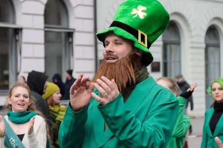 MUNICH, BAVARIA, GERMANY - MARCH 13, 2016: Close up on man with red beard and green hat at the St. Patrick's Day Parade.