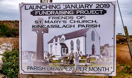 Kincasslagh, Belcriut, County Donegal / Ireland - February 22 2019 : St Marys church is asking for money by a fundraising project