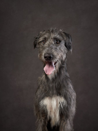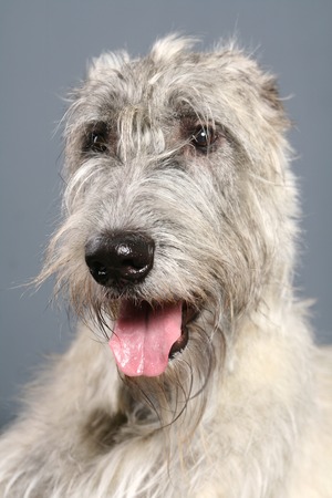 A beautiful Irish Wolfhound dog head portrait with cute expression in the face