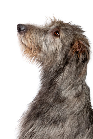 Irish wolfhound in front of a white background