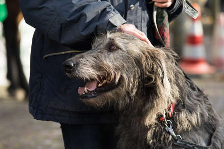 Portrait of an Irish wolfhound used for hunting with his boss