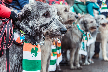 Moscow, Russia-March 16, 2019: Irish wolfhounds at Saint Patricks Day in Sokolniki Park. Moscow